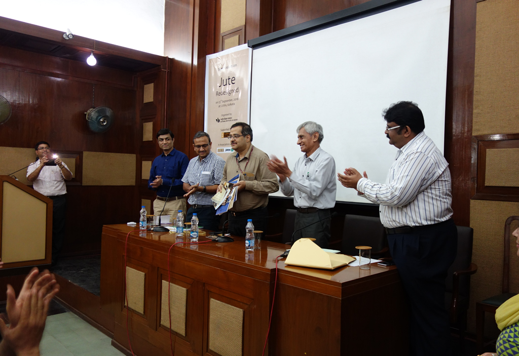 Symposium on Jute Redesigned was organized for Design Sensitization and JDP Dissemination to the Jute Manufacturers and Exporters. The technology of High and Low Cost Jute Bags (60), Woven Lifestyle (38), Dyed/Finished Lifestyle (66), Indigo Lifestyle (12), Printed Lifestyle (20) was released by Dr. Subrata Gupta (IAS), Jute Commissioner, Govt. of India for commercial manufacture by the Jute Industry. Also, Jute Shopping Bags and Woven/Finished Samples for Lifestyle Accessory were showcased. There were about 100 participants from Jute Industry who showed keen interest in deliberations and display of jute products developed by NID at the symposium.