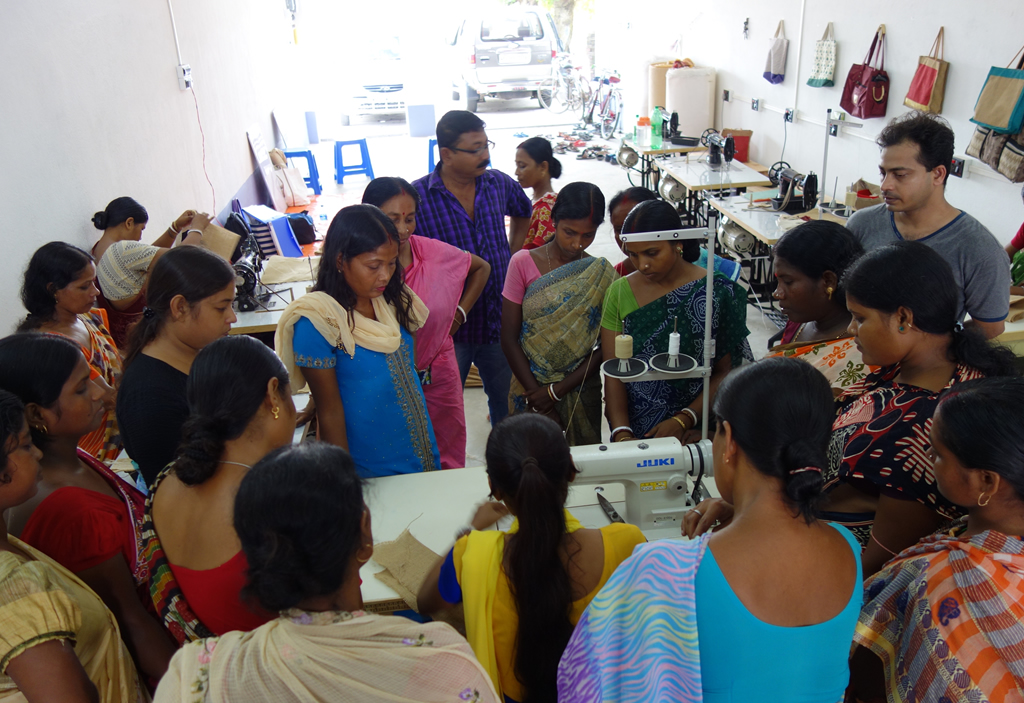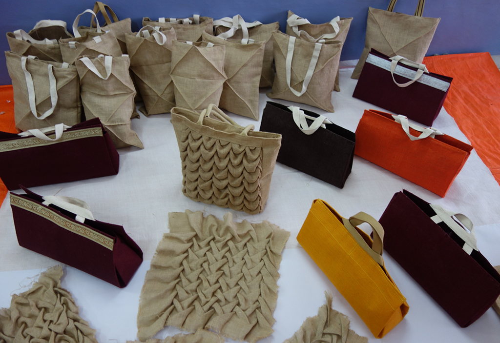 Training Program was organized by NID for Women Self Help Group (WSHP) at Common Facility Centre, Dhaniakhali as well as Deganga from 20th to 23rd Sept. 2016. There were 15 to 20 participants at both the centres and they not only learnt the technique of jute bags making but also produced the same under the guidance of experts from NID.